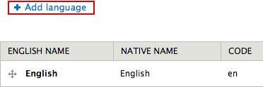 使用する言語を管理画面から追加します。言語の設定ページ(admin/config/regional/language)へアクセスしてください。