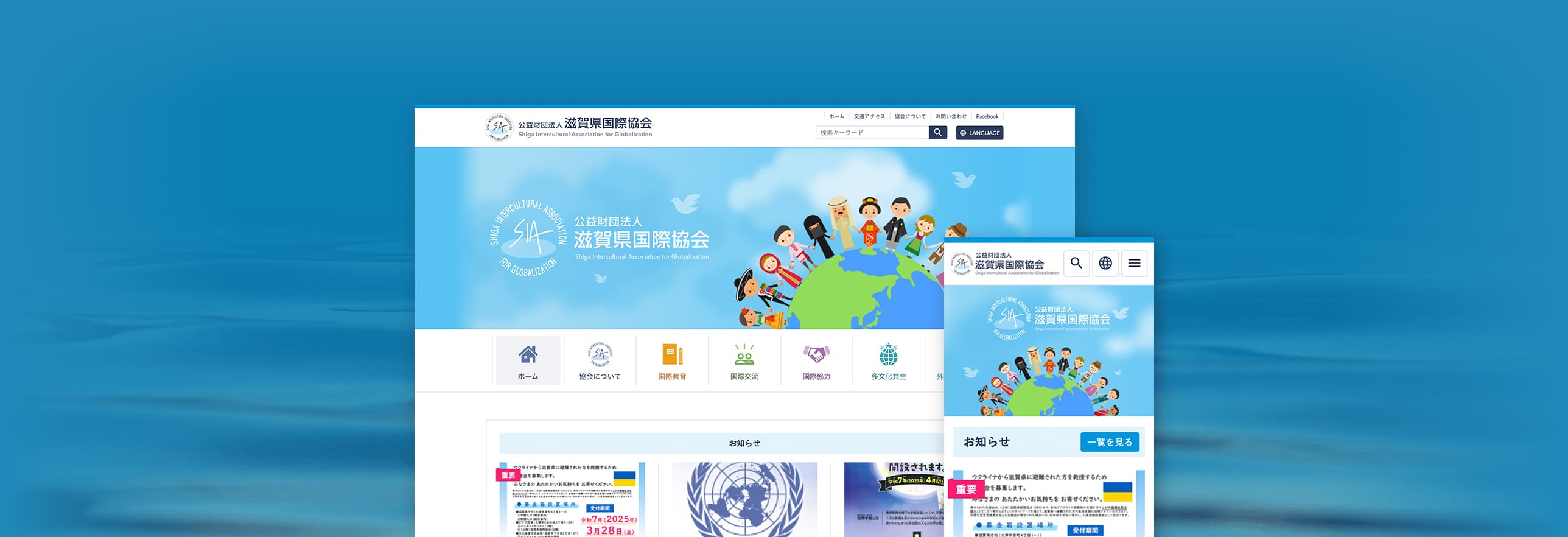 公益財団法⼈ 滋賀県国際協会様のホームページリニューアルを担当させていただきました。滋賀県国際協会様は、県⺠の国際理解を深め、国際協⼒思想の⾼揚を図るとともに、経済・技術・⽂化等幅広い分野の国際交流を積極的に推進し、国際化に対応した地域社会の振興に寄与することを⽬的に設⽴された団体です。